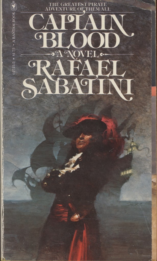 A brief chronology of mass market paperback covers from various publishers of Captain Blood: His Odyssey. The cover art ranges from mere pro forma to quite elaborate. Book cover art, including dust jackets, has one principal purpose beyond identifying the book and author: to entice readers into buying the book. Historical accuracy is secondary at best, and often entirely ignored–and sometimes even the actual text of the book itself is ignored, with tropes substituted instead. In any case, enjoy. 🙂